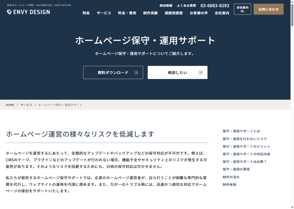 | サービスURL | https://envydesign.jp/service/website-support/ |
