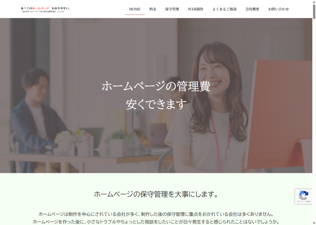 | 株式会社リヒトス | ホームページ制作・運用・保守管理/テキスト・画像差し替え/機能追加オプション/サイト運用コンサルティング | 月額 3,300円~(保守管理プラン:ライトな日常保守対応) | WordPress案件に特化、トラブル対応の迅速さと技術力が強み |
