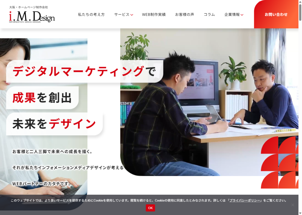 インフォメーションメディアデザイン株式会社は、大阪市北区に本社を構えるWeb制作会社です。Webサイトの制作に加え、公開後の保守・運用・更新サポートを提供しています。保守・運用サービスでは、Webサイトの更新作業や修正対応などを行う定額制サポートプランを用意しており、専任の担当ディレクターが対応する体制を採用しています。これにより、継続的なサイト運用を支援しています。