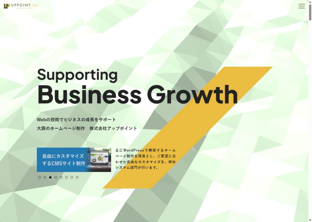 株式会社アップポイントは、大阪を拠点にWeb制作から保守・運用、Webシステム開発まで手掛ける総合Web企業です。保守運用サポートでは、修正作業、画像やバナー差し替え、ドメイン・サーバ管理、緊急トラブル対応を含めた柔軟な体制を整えています。